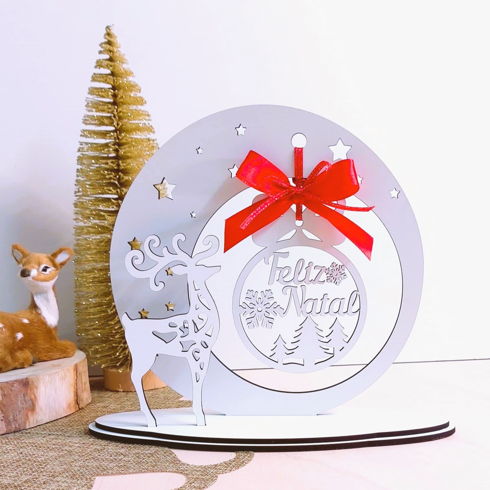 Celebre a magia do Natal com um encantador aro natalício, adornado com uma rena e uma bola festiva, desejando a todos um Feliz Natal!