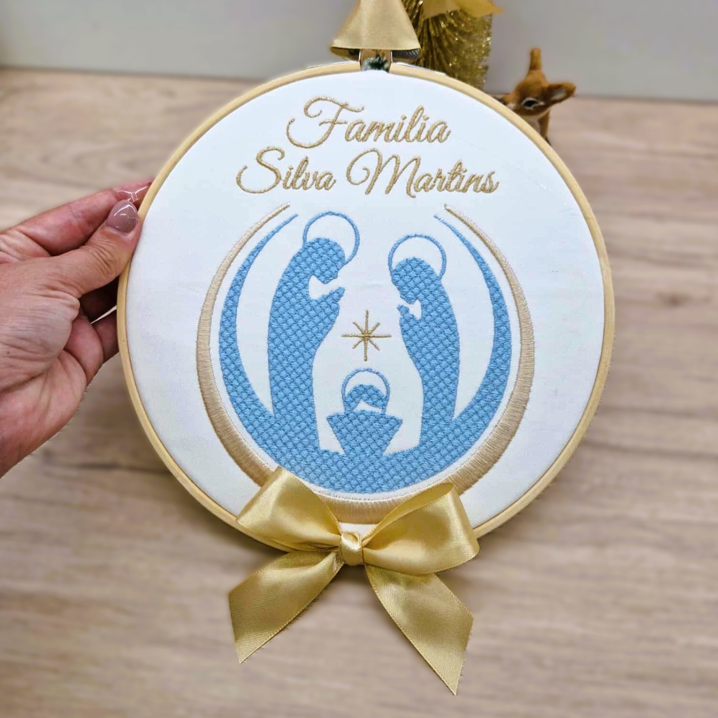 Bastidor Bordado – Presépio da Família personalizável.