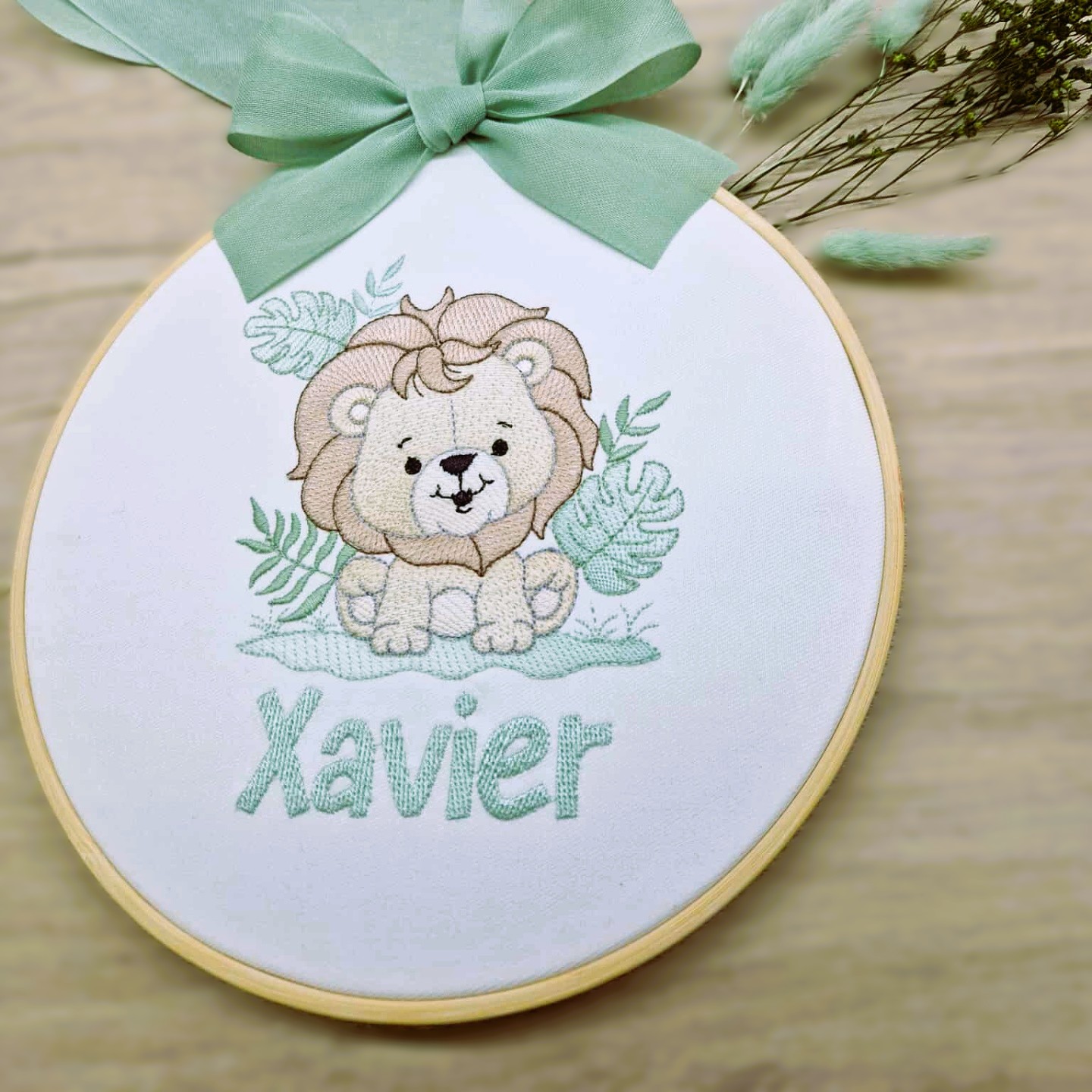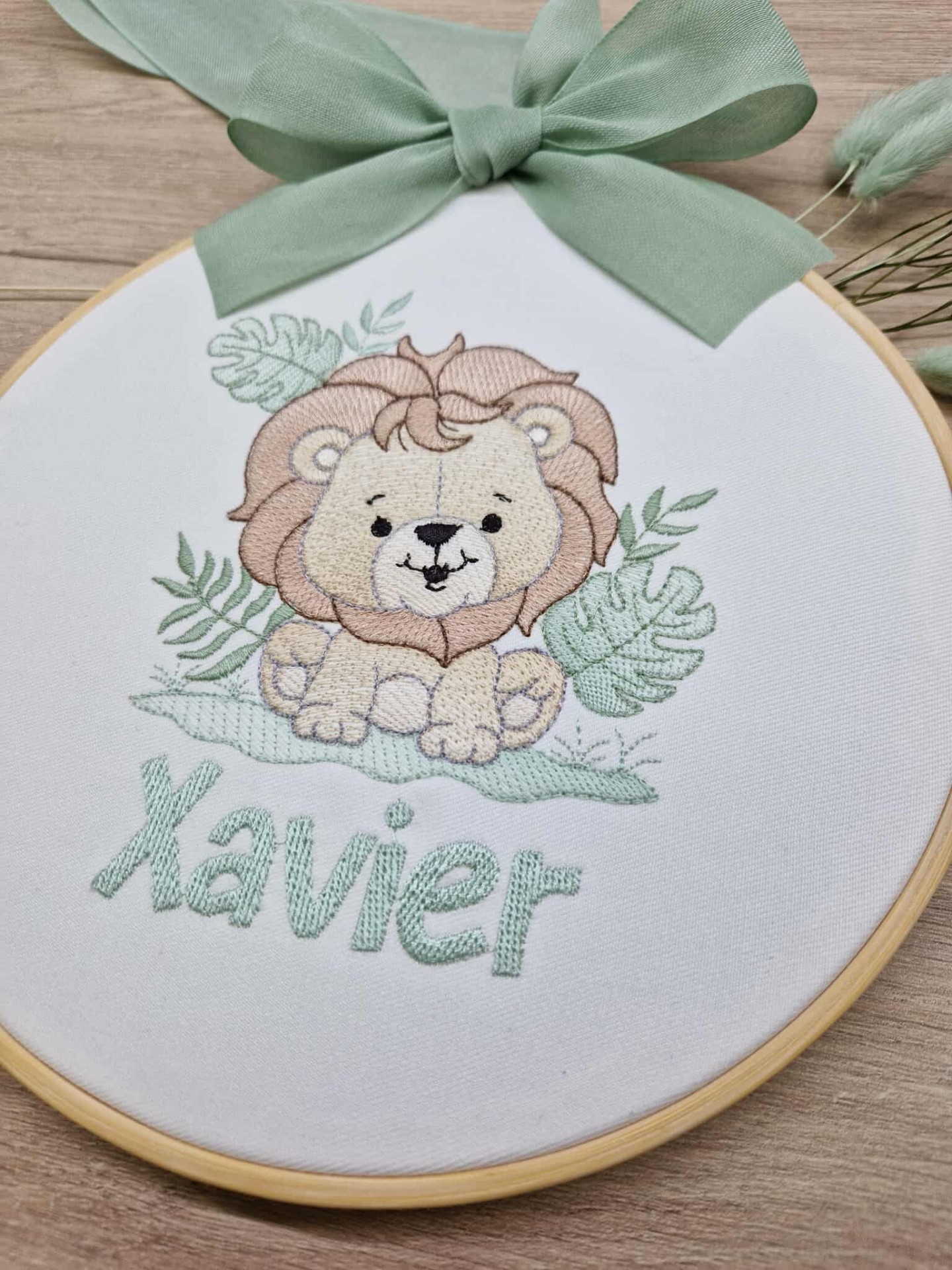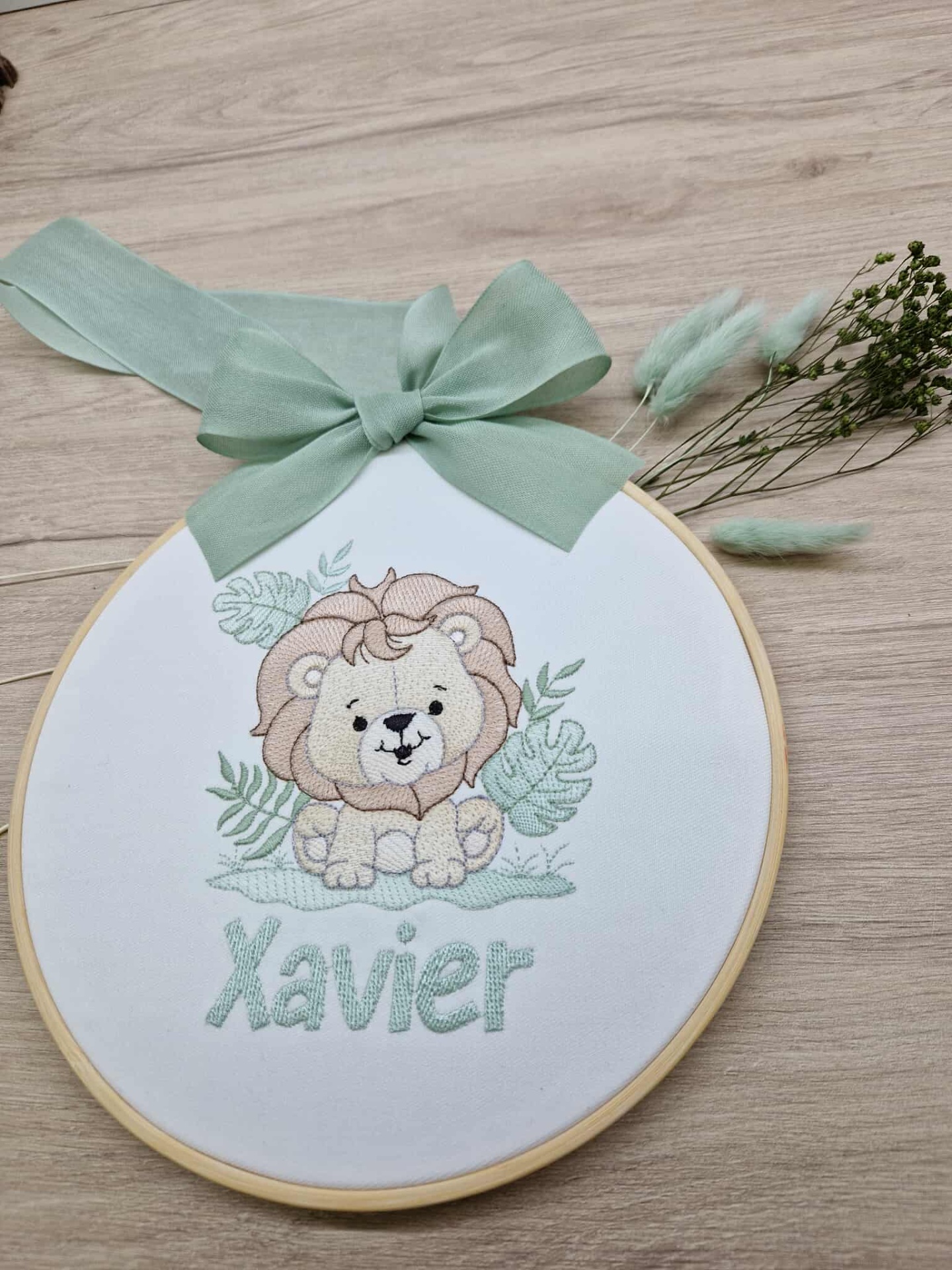 Delicadamente bordado com amor e ternura, este bastidor celebra a chegada do pequeno Xavier ao mundo. Com elementos suaves, cores acolhedoras e detalhes personalizados, a peça transmite carinho, proteção e alegria — tudo o que envolve os primeiros momentos de vida.