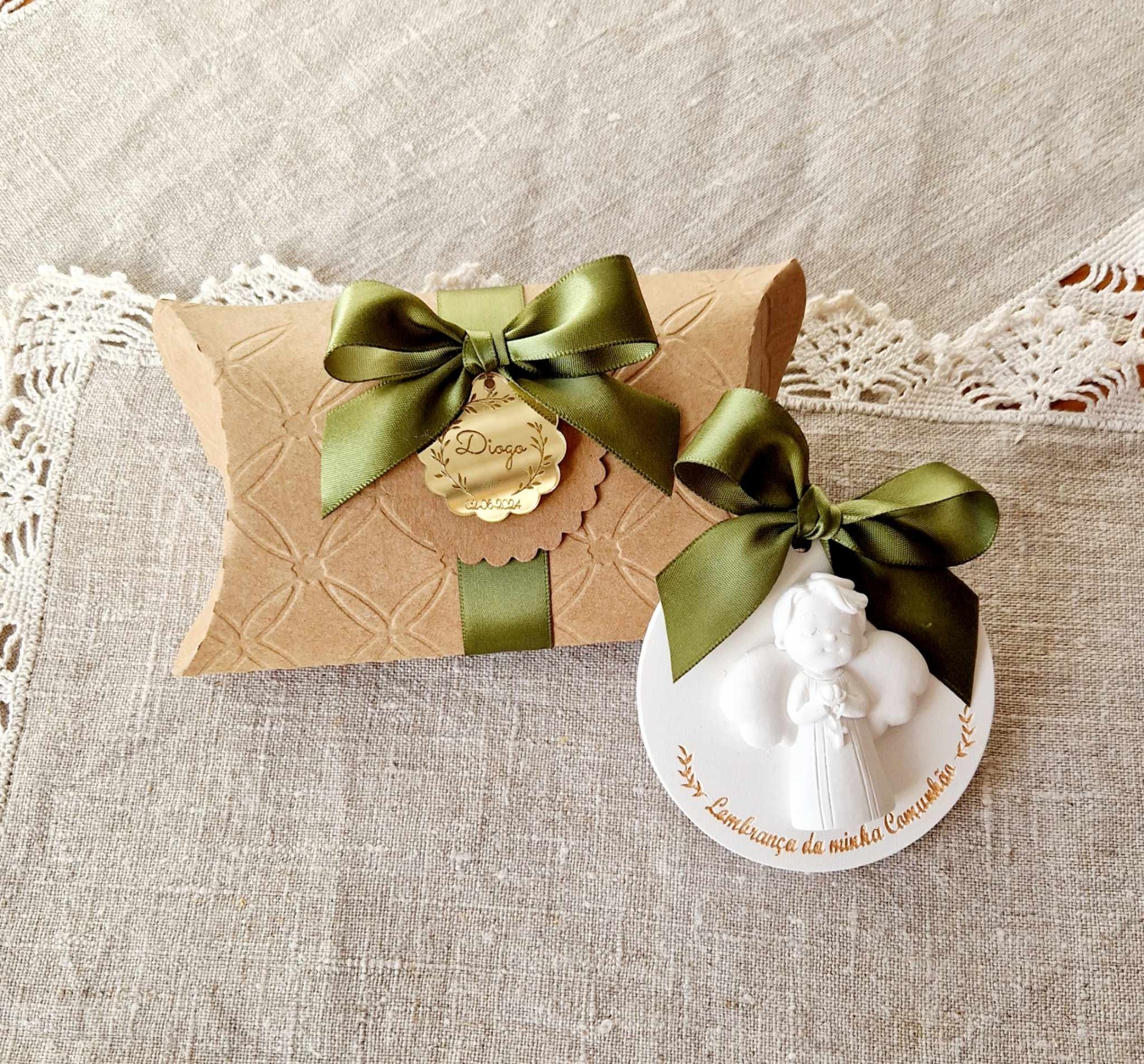 Caixa Almofada de Gesso Perfumado: Comunhão Anjo