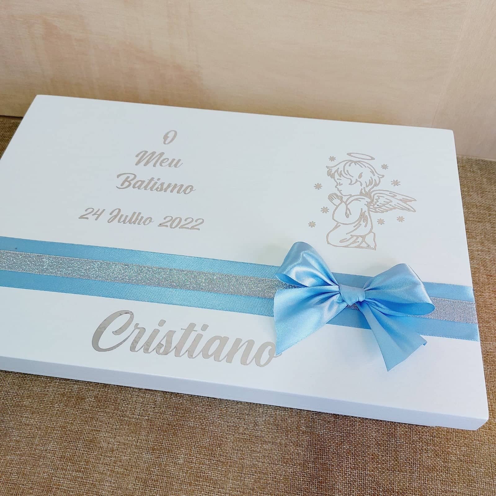 As nossas Caixas de Batismo são feitos para cada cliente e podem conter: