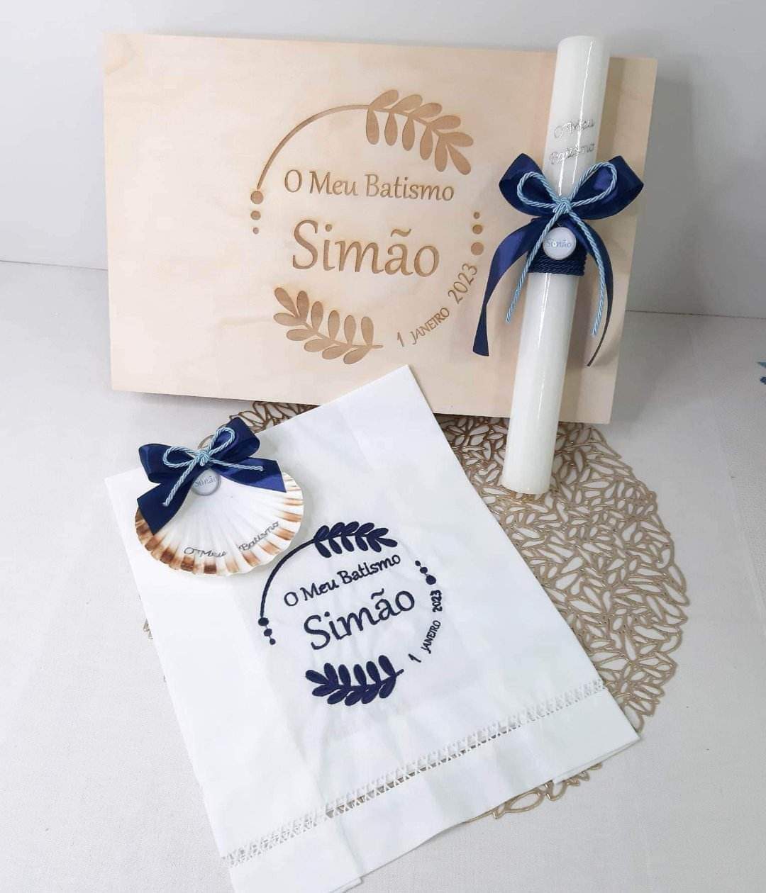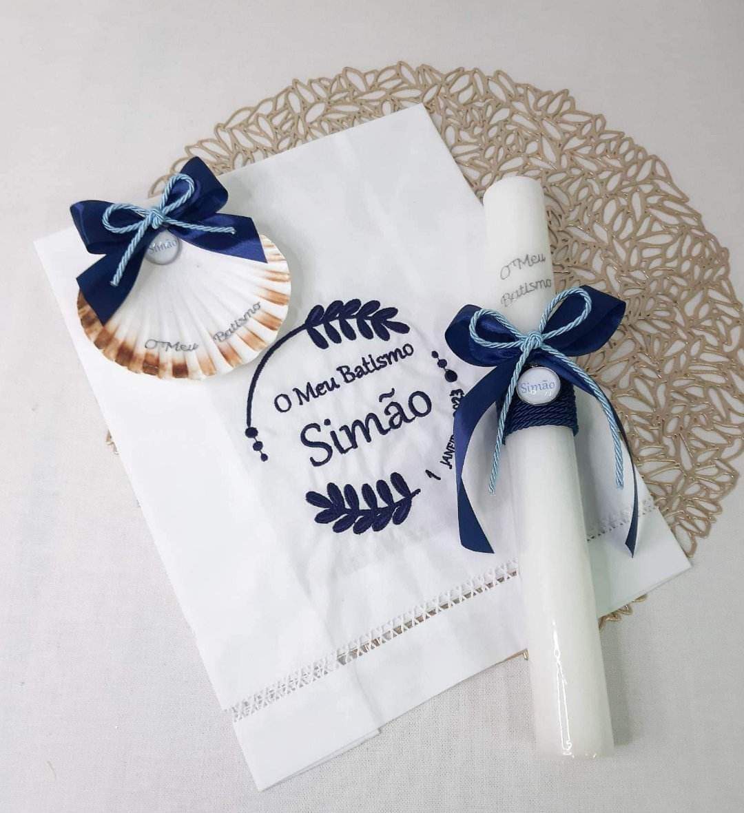 Este conjunto batismo personalizado é composto por;