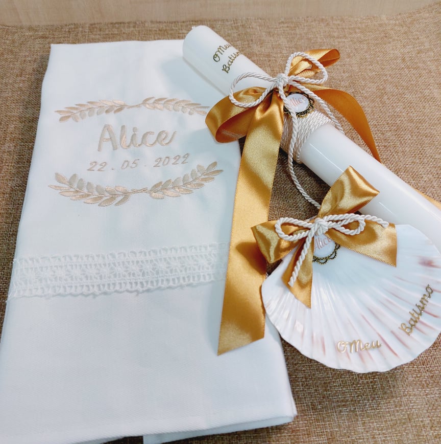 Conjunto Batismo Vela, Concha e Toalha ref.2141