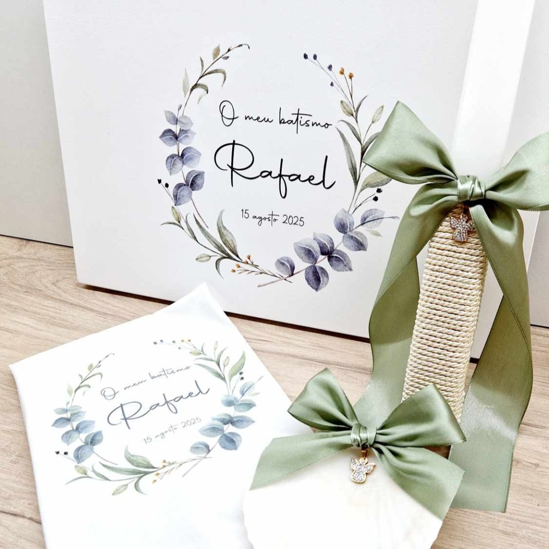 As nossas Caixas de Batismo são personalizados para cada cliente e podem conter: