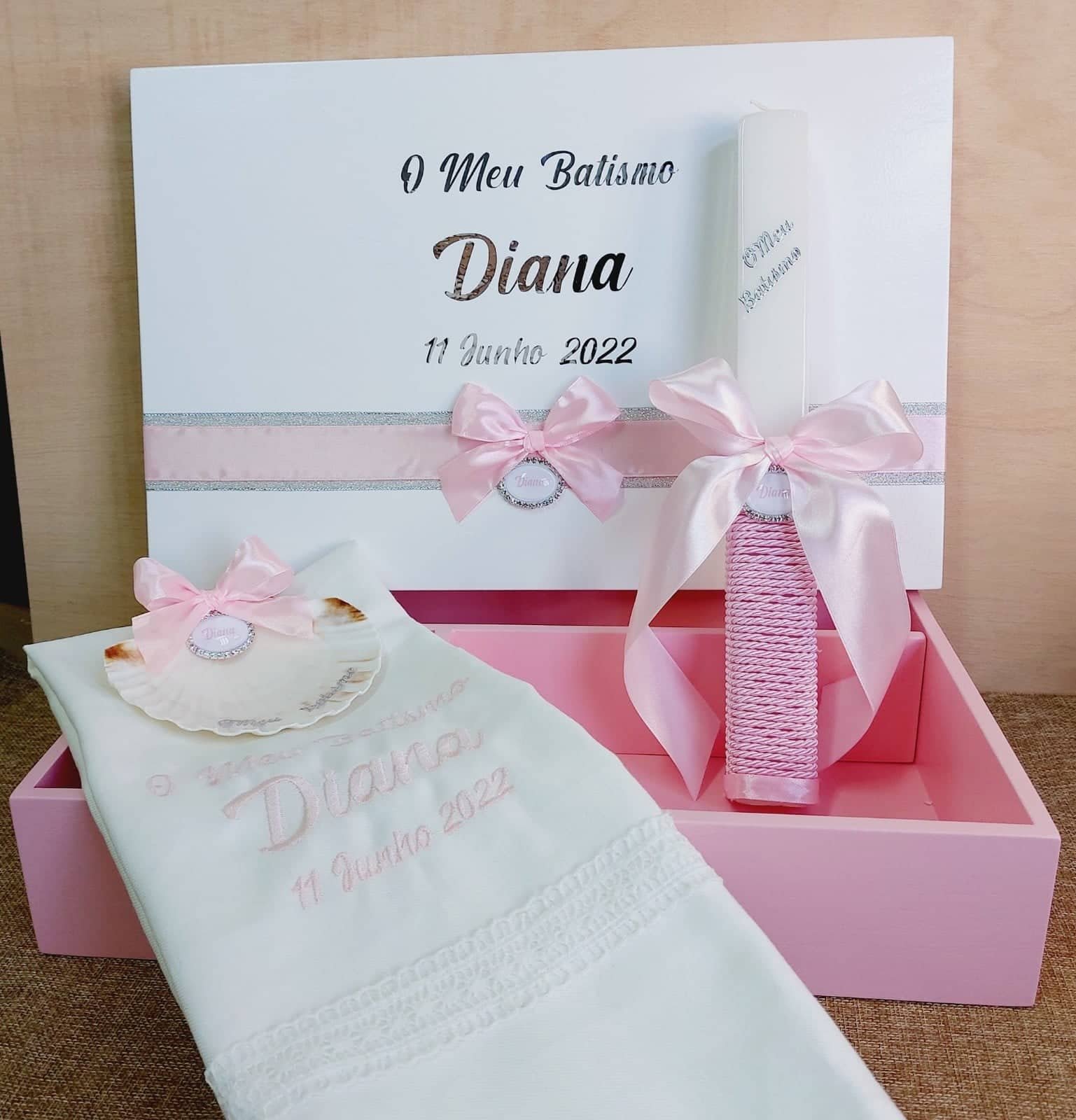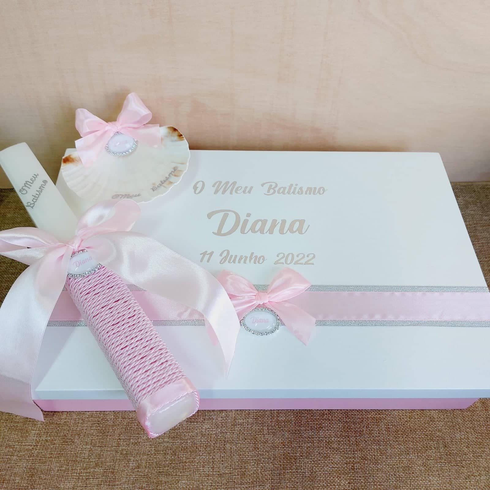 As nossas Caixas de Batismo são feitos para cada cliente e podem conter: