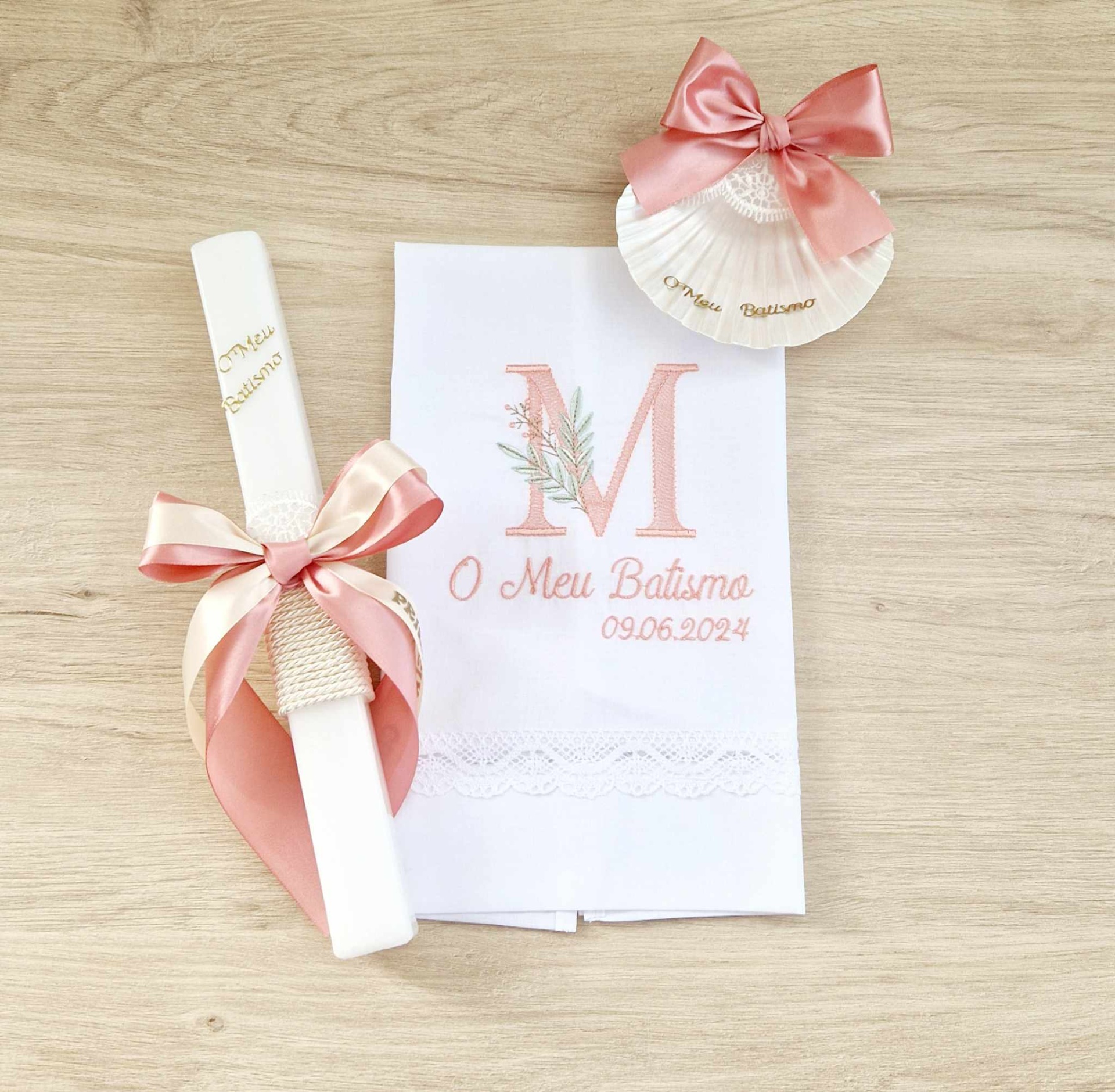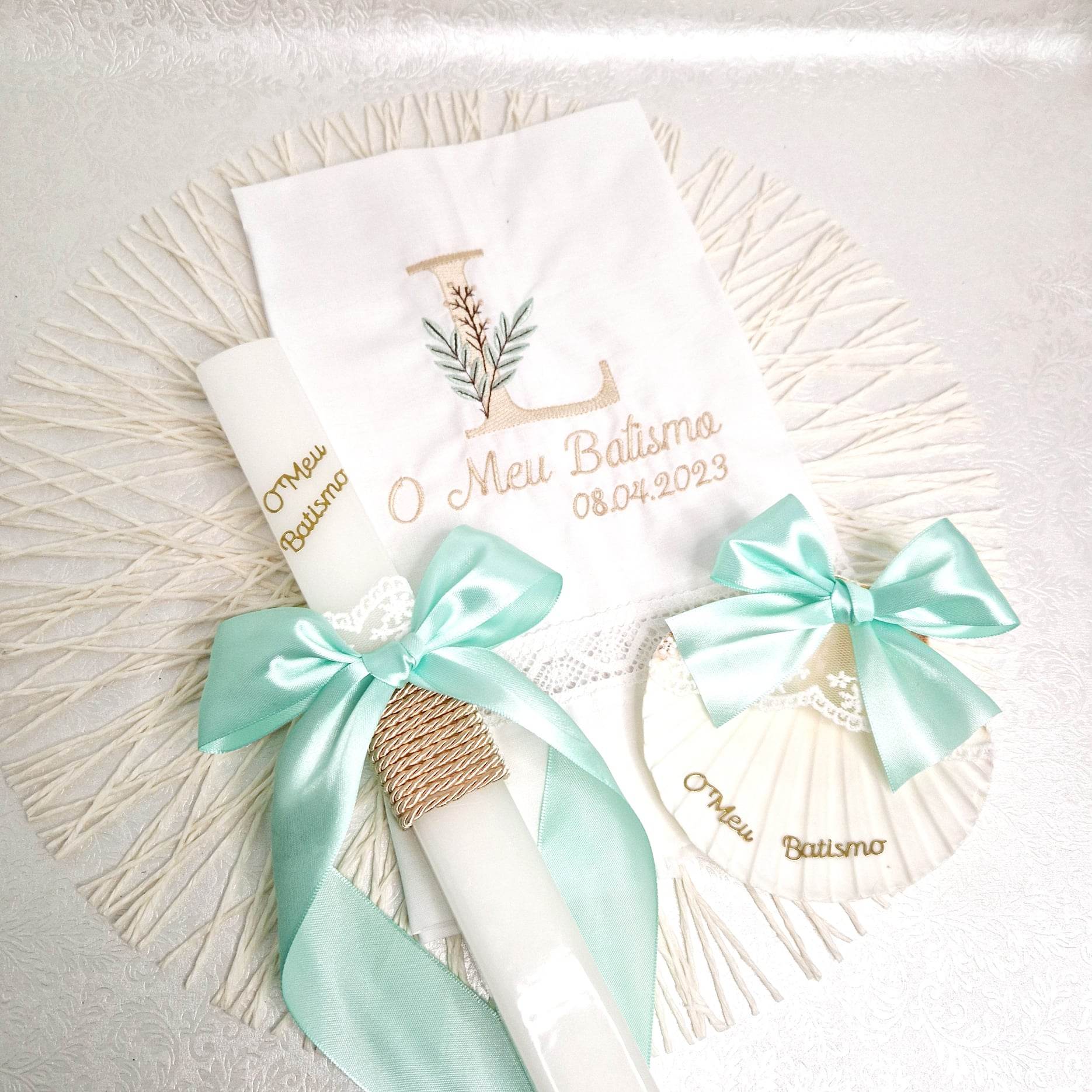 Conjunto Batismo Vela, Concha e Toalha CB6827