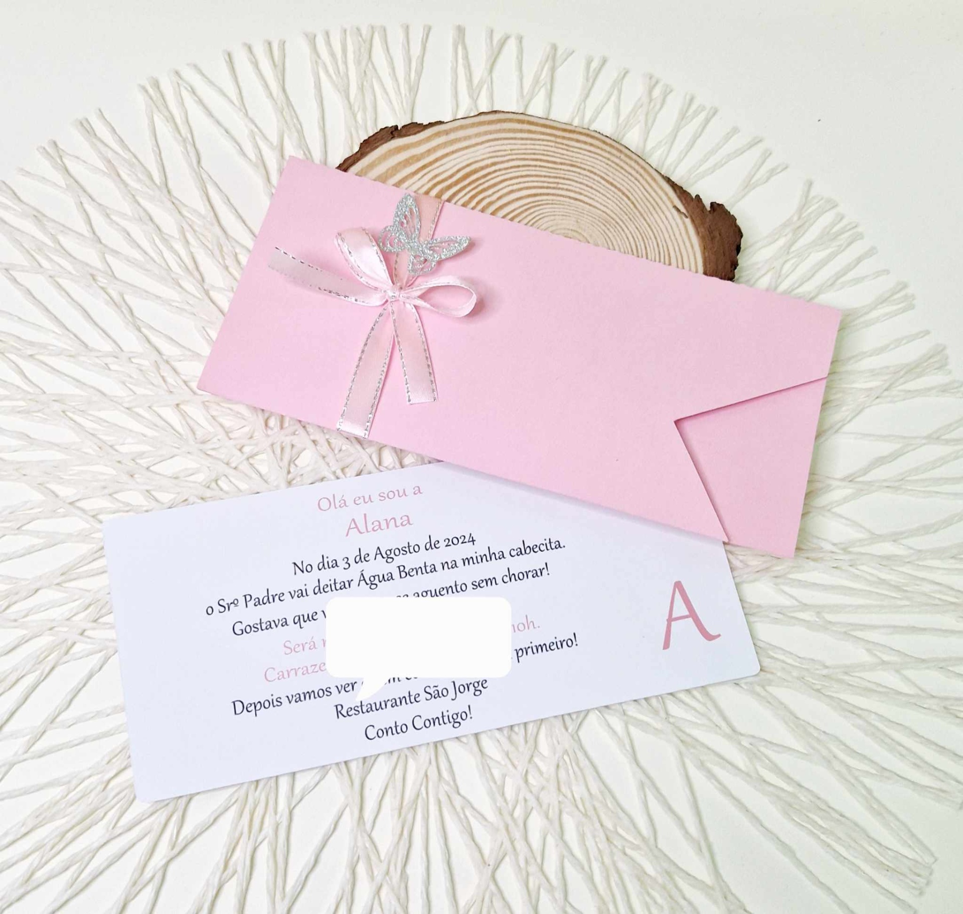 Convite rosa com borboleta prata