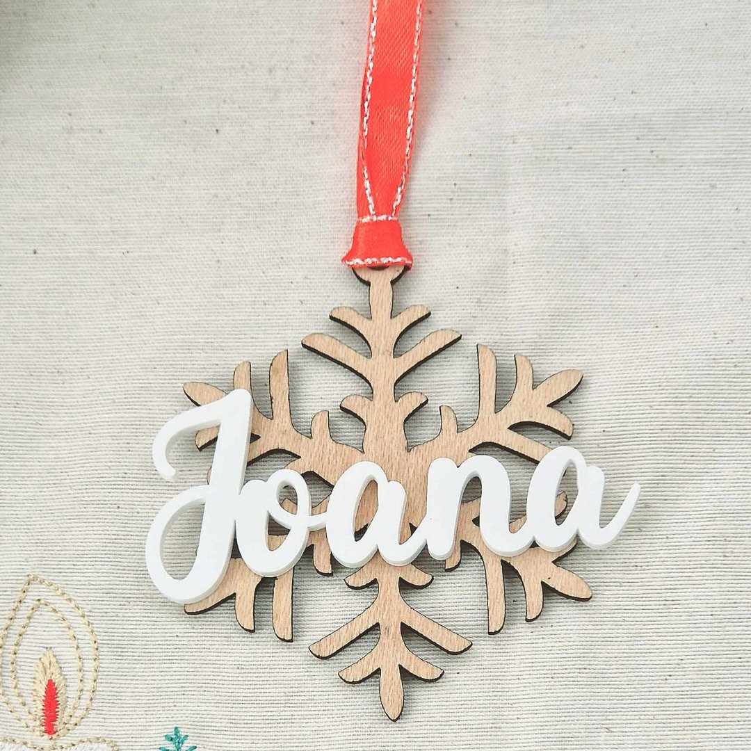 Enfeite arvore natal floco de neve #2 com nome