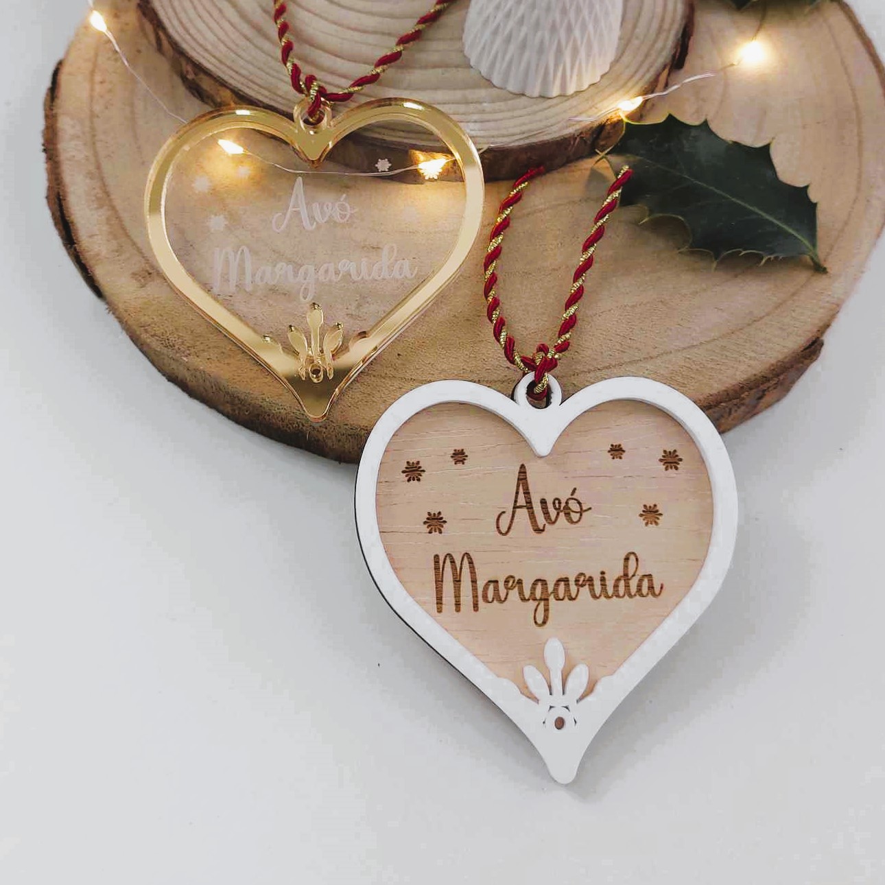 Celebra o Natal com um toque pessoal e encantador: o Enfeite de Natal Coração Personalizado.