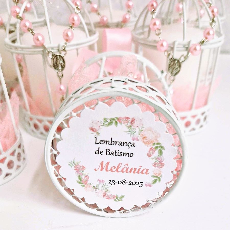Lembrança de batismo gaiola com vela e rosario, perfeita para celebrar esse momento especial de renovação e fé.