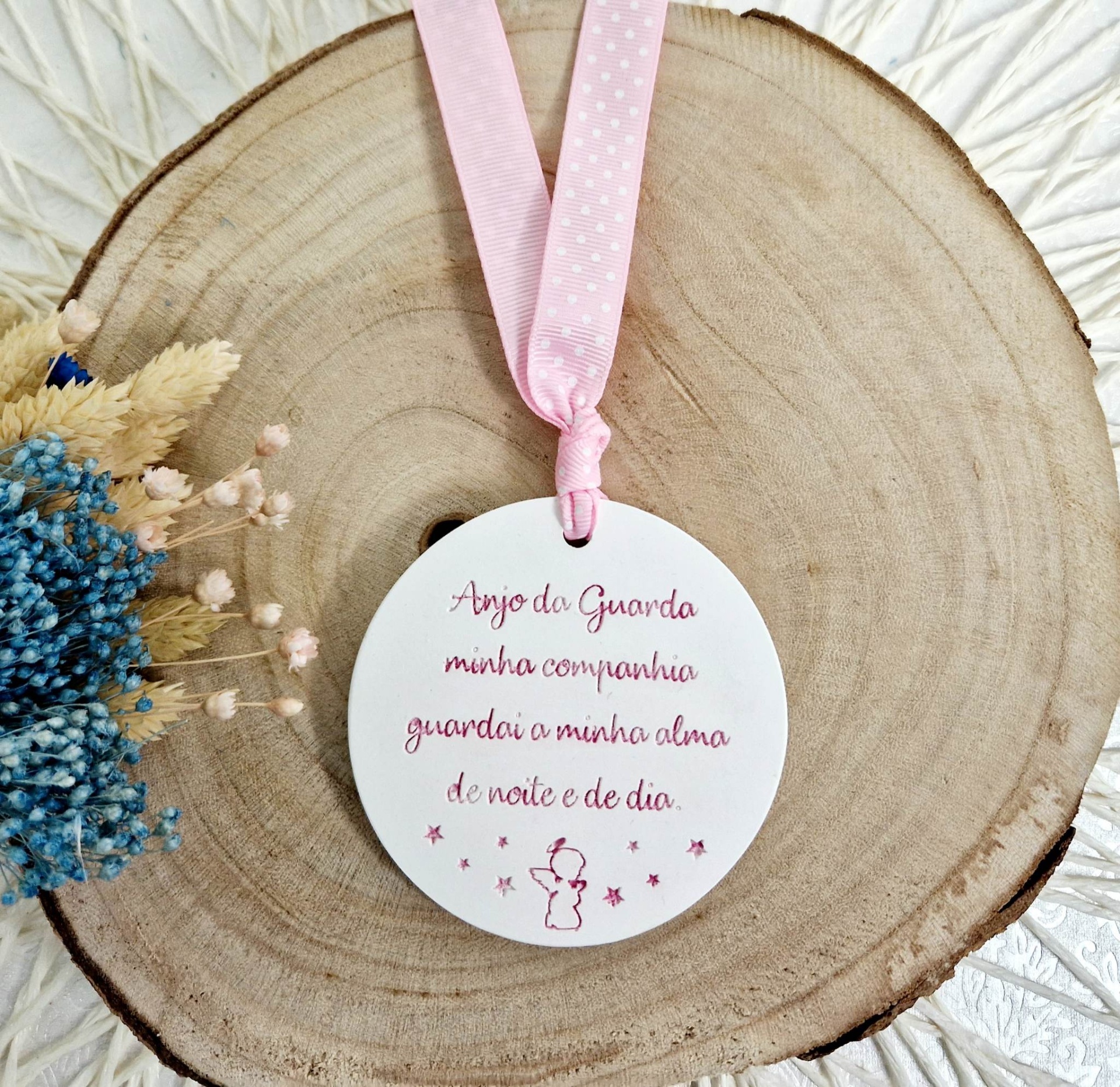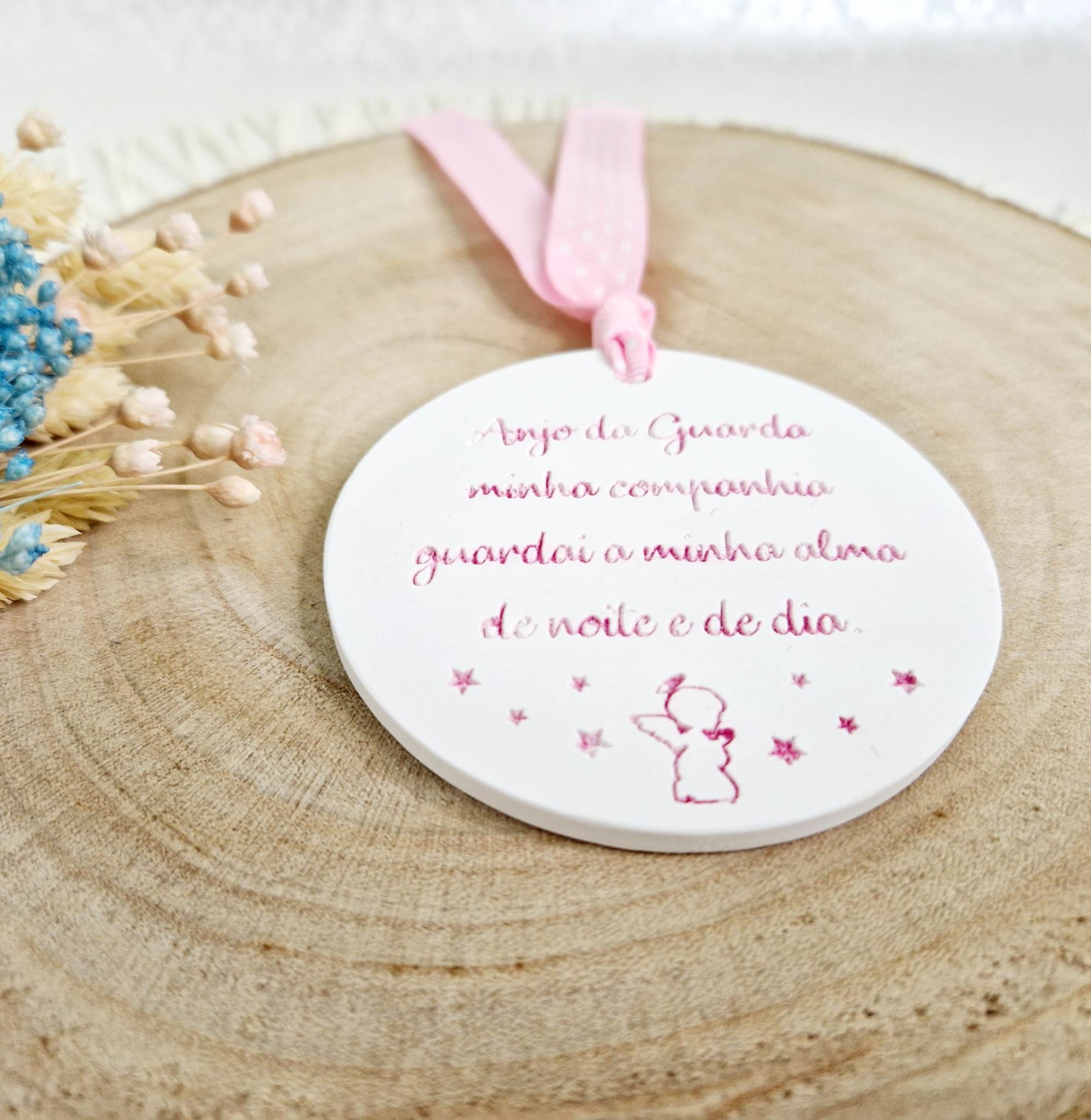 Gesso perfumado com oração anjo da guarda inclui fita na cor da oração