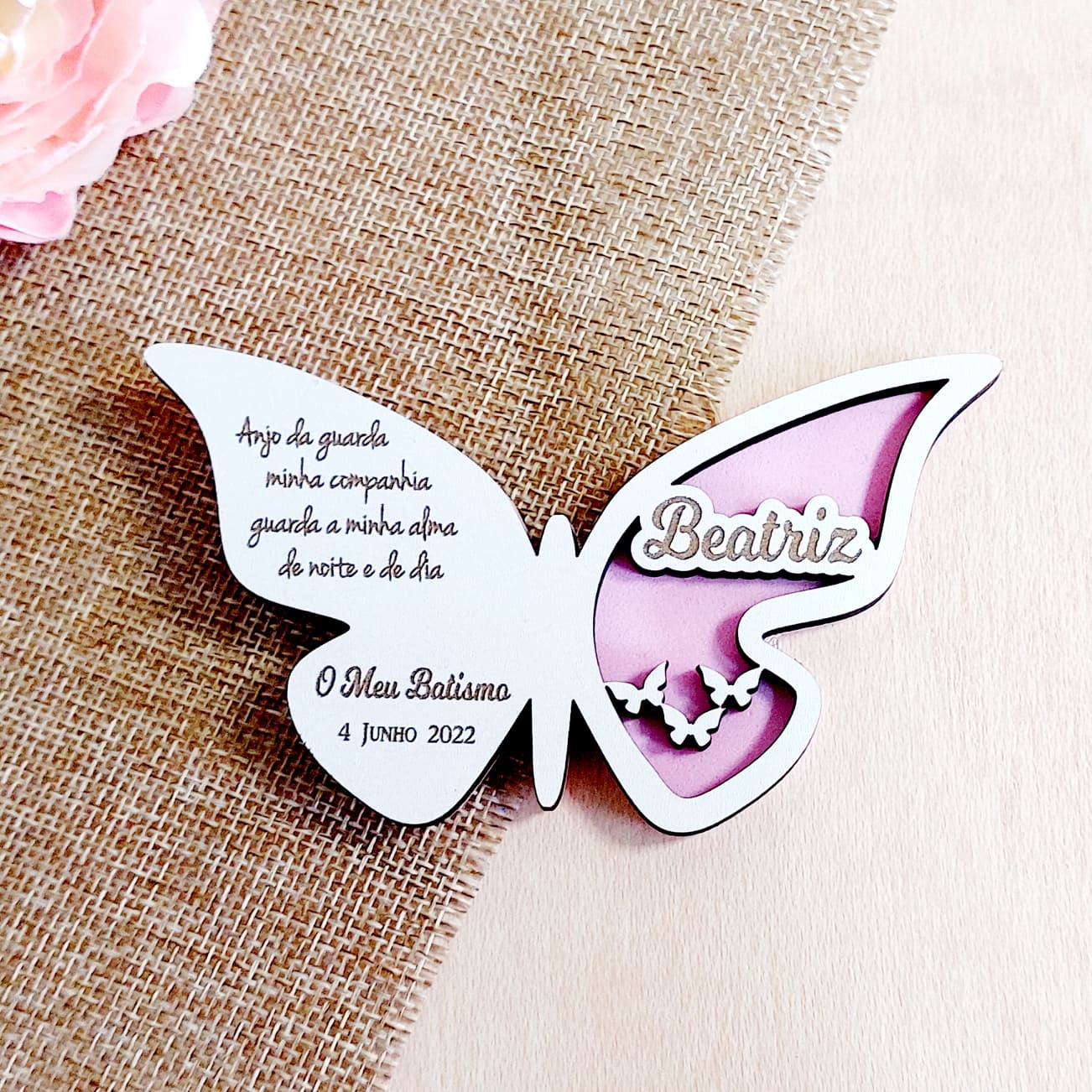 Iman em MDF branco fundo em EVA Cor de rosa