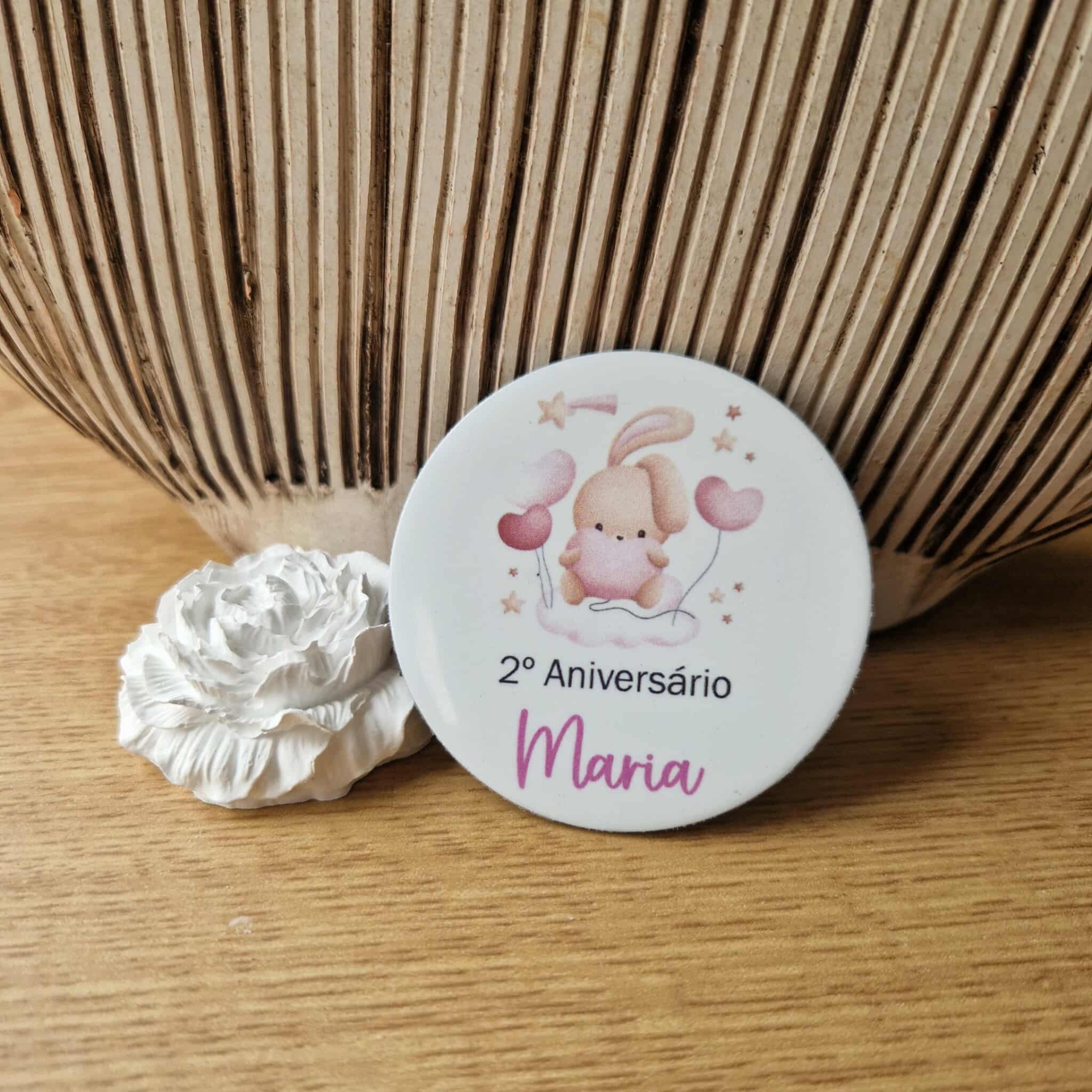 Celebre momentos especiais com um íman personalizado em forma de coelhinha/o, acompanhado por um delicado saco de organza. Uma lembrança encantadora e simbólica, perfeita para aniversários, mas também adaptável a batizados, comunhões ou outros dias especiais.