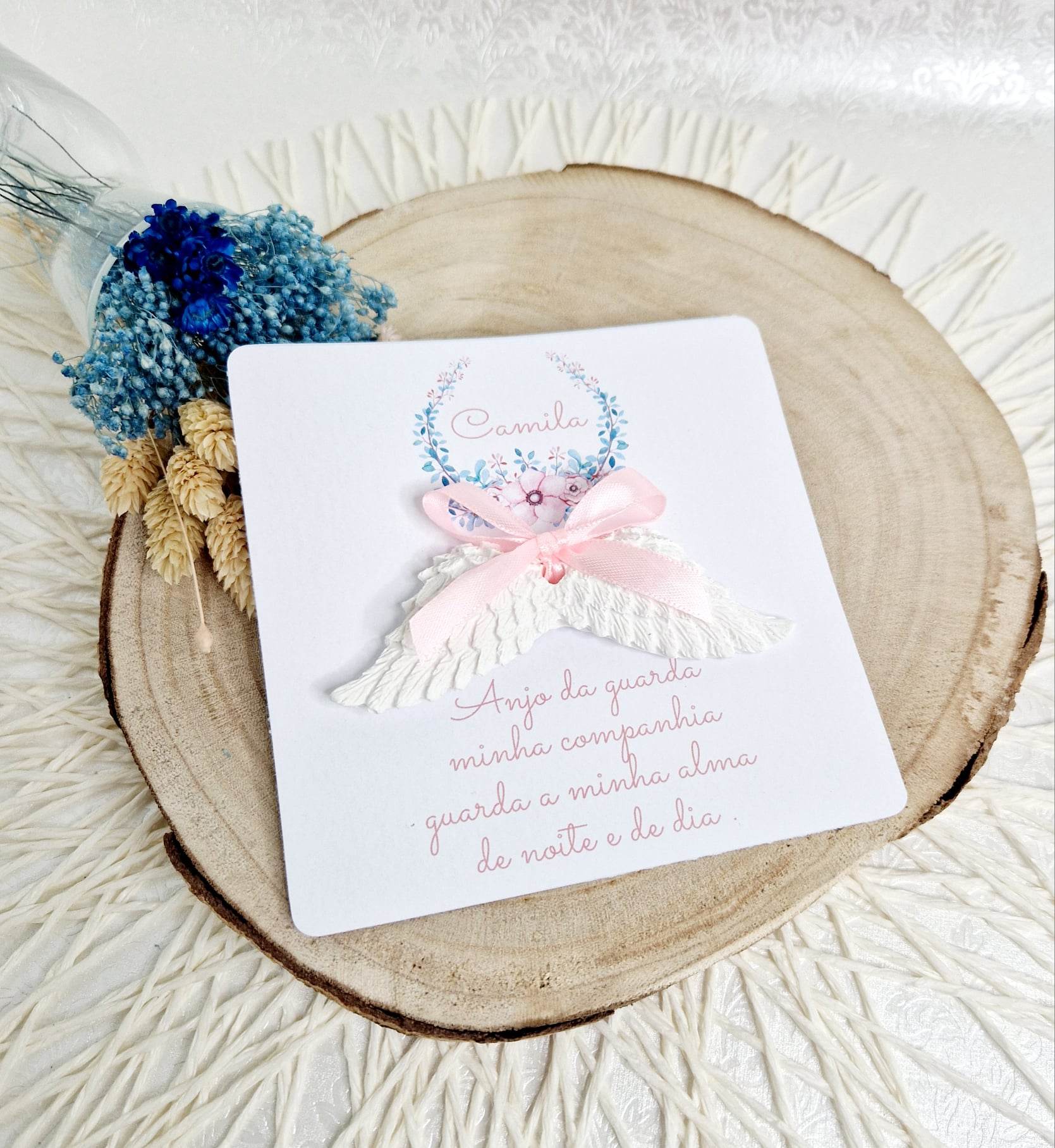 Cartão oração anjo da guarda e gesso perfumado asas