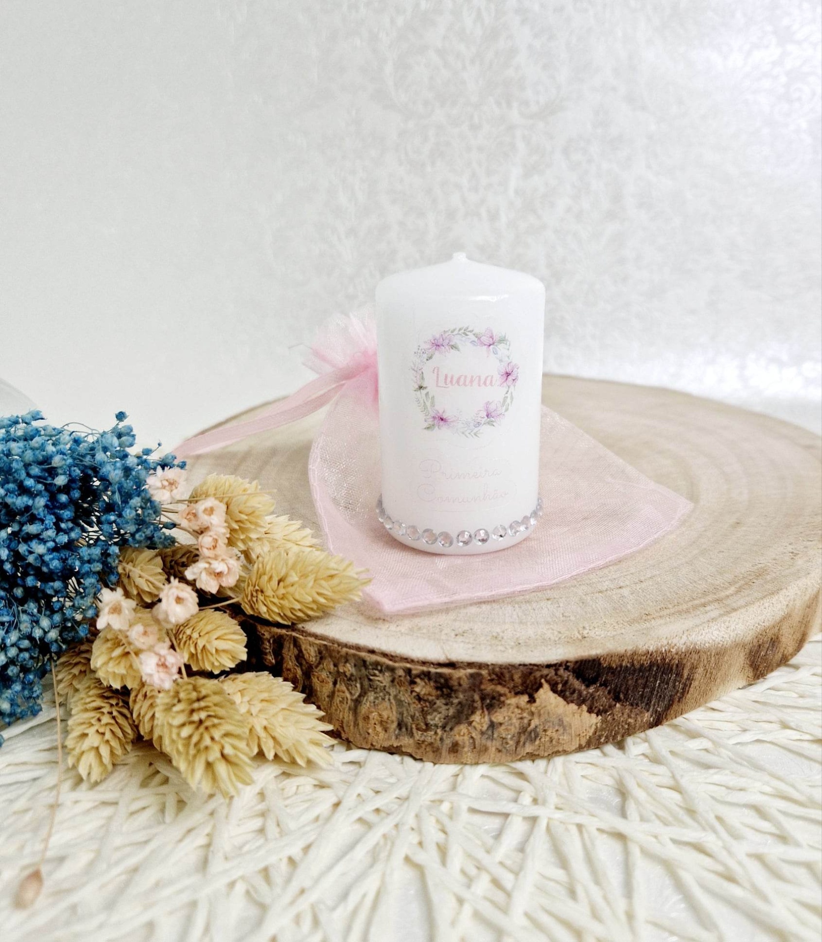 Vela personalizada em tons rosa
